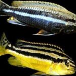 Male Auratus Cichlids are generally larger and more brightly colored than females. They have longer fins and more intense coloration, particularly on their face and dorsal fin. Females tend to be smaller and less colorful than males.
