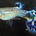 These fish are small, usually they are 2.5 inches, and have teeth in their upper and lower jaws. They are extremely colorful and there are many different coloration patterns, actually, there are no two individuals alike, their colors are like their fingerprint. Wild specimens are gray with a few tints of color, however, years of captive breeding and the fact that they reproduce quickly and have many offspring led to strains of intense coloration. There are also 12 tail fin varieties: round tail, pintail, pointed or spear tail, swordtail, lyretail, spade tail, flagtail, veil tail, fantail and triangle tail. The color of the tail is what defines the fish’s name even if the body is of a different coloration, for example, if the body is red and the tail is blue than it is called a blue Guppy. It is very rare to find wild specimens for sale, in most stores there are only inbred guppies, usually these have a more fragile health. Regarding the Blue Cobra Guppies, these fish are blue with orange and dark spots on the tail fin.