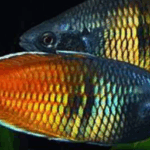 These fish are blue gray on the front half of the body and bright orange on the back half, it is worth noticing that at the store they will most likely be dull gray but once at home and being fed a varied diet their colors will start to show. Males can reach up to 4.4 inches while females only reach up to 3.2 inches. Currently this species is considered to be endangered due to over harvesting. To keep these fish in captivity water pH should be between 6.5 and 8.0 and water temperature should range from 75°F to 78°F. The tank should have a sandy substrate, dense vegetation and open areas for swimming. The tank should also have a cover to prevent them from jumping off. They are peaceful and can be kept in community aquariums with similar sized tankmates, also, they should be kept in groups of at least 6.