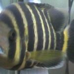 The average adult is 10 inches. These fish have white and black vertical stripes which tend to fade with age.