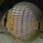 The Common Discus is a popular freshwater fish that is known for its beautiful coloration and unique body shape. They can grow up to 8 inches (20 cm) in diameter and require a minimum tank size of 50 gallons. They are native to the Amazon River basin in South America.