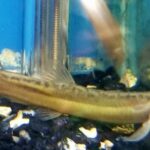 These fish are brown and have dark gray spots and dark brown spots. In stores it also exists a golden variety in which the fish are yellow to orange. Dojo Loach develop a real personality and may become tame enough to hand feed. Their name comes from their sensitivity to changes in barometric pressure which makes them more active. In some countries they are an important source of protein and in China they are believed to treat hepatitis, cancer and other health issues. To keep these fish in captivity, water pH should be between 6.0 and 8.0 and water temperature should range from 64ºF to 74ºF. The tank should have a sandy or fine gravel substrate, rocks and hiding places. It should also have a cover to keep them from jumping out of the tank. This species is peaceful and can be kept in a community aquarium, however, it may eat fry, eggs and smaller tankmates. It should be kept in groups of at least 3. A 55 gallon tank is the minimum recommended to keep a small group.