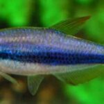The Emperor Tetra is a freshwater fish native to the rivers and tributaries of Colombia, South America. They are a small species, typically reaching about 2 inches (5 cm) in length. Emperor Tetras have a distinctive silver body with a bright red stripe running along the middle of their body from head to tail. The dorsal fin is also red and the tail fin is forked. They are peaceful and make great additions to community aquariums. Emperor Tetras are active swimmers and prefer a well-planted aquarium with open swimming spaces. They can be kept in groups of six or more.