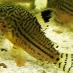 These fish are silver with black dots and stripes and can reach 2 inches. The False Julii catfish is not the same as the Corydoras julii, the former one has thicker stripes and dots while the latter one has thinner stripes and dots. To keep this species in captivity, water pH should be between 5.9 and 7.0 and water temperature should range from 72ºF to 79ºF. The tank should have dense vegetation, plenty of hiding places and a sandy substrate. This species is peaceful and can be kept in a community tank with other peaceful tankmates. These fish should be kept in a group of 6 or more in an at least 15 gallon tank.