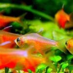 Flame tetras are small freshwater fish that are native to South America. They grow up to 2 inches in length and have a bright orange or red coloration, hence their name. These fish are peaceful and can be kept in groups of six or more in a tank that is at least 10 gallons in size. A planted aquarium with a dark substrate and plenty of hiding spots would be ideal for them.