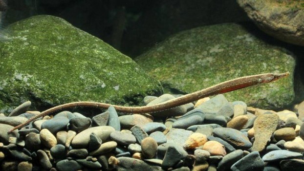 These fish are slender and have toothless mouths that create a vacuum to suck tiny crustaceans in. There are many color morphs like purple, orange, red, green and black, some may even be able to change their colors according to their surroundings. This species can reach up to 6 inches. Most pipefish species inhabit salt water however there a few species that inhabit freshwater. To keep these fish in captivity, water temperature should range from 72°F to 77°F and water pH should be between 8.1 and 8.4. The tank should have rocks, caves and hiding places. It should also have very good lighting since they are visual eaters, badly lit aquariums will make it hard for them to find food. They can be kept in a species only tank or in a tank with seahorses, they shouldn’t be kept with any other species.