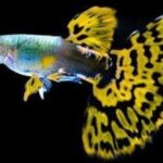 These fish are small, usually they are 2.5 inches, and have teeth in their upper and lower jaws. They are extremely colorful and there are many different coloration patterns, actually, there are no two individuals alike, their colors are like their fingerprint. Wild specimens are gray with a few tints of color, however, years of captive breeding and the fact that they reproduce quickly and have many offspring led to strains of intense coloration. There are also 12 tail fin varieties: round tail, pintail, pointed or spear tail, swordtail, lyretail, spade tail, flagtail, veil tail, fantail and triangle tail. The color of the tail is what defines the fish’s name even if the body is of a different coloration, for example, if the body is red and the tail is blue than it is called a blue Guppy. It is very rare to find wild specimens for sale, in most stores there are only inbred guppies, usually these have a more fragile health. Regarding the Lemon Cobra Guppies, these fish have a metallic green and blue body with a yellow tail fin.