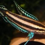 These fish are dark brown with two yellow or red horizontal stripes along their body and a colorful fan shaped tail fin, their pelvic fins are blue and their anal and dorsal fins have blue edges. They are small only reaching 1.5 inches. Like other Gouramis, the Licorice Gourami has a special organ called the labyrinth organ, this organ acts like a lung allowing them to breathe atmospheric air, this is a survival mechanism for when they are in polluted waters or in areas affected by drought. To keep these fish in captivity, water temperature should range from 76ºF to 81ºF and water pH should be between 5.7 and 7.0. The tank should have plants and hiding spaces. They are best kept in pairs in a single species tank, however, they can be kept in a community aquarium with other small fish.
