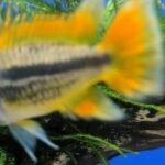 These fish have the name Cockatoo due to the male’s extended rays of the dorsal fin, these first rays are higher than the rest giving it a crested look. Males are silver and have a dark horizontal stripe, their underside is golden brown. Females are yellow and black. There are many different color varieties. The Orangevariety has bright orange dorsal fins. These fish can reach 4 inches in length. To keep these fish in captivity, water pH should be between 6.0 and 7.8 and water temperature should range from 75°F to 81°F. The tank should have a sandy substrate, rocks, plants, floating vegetation, caves and hiding places. They can be kept in community aquariums with other peaceful species that aren’t too large.