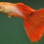 These fish are small, usually they are 2.5 inches, and have teeth in their upper and lower jaws. They are extremely colorful and there are many different coloration patterns, actually, there are no two individuals alike, their colors are like their fingerprint. Wild specimens are gray with a few tints of color, however, years of captive breeding and the fact that they reproduce quickly and have many offspring led to strains of intense coloration. There are also 12 tail fin varieties: round tail, pintail, pointed or spear tail, swordtail, lyretail, spade tail, flagtail, veil tail, fantail and triangle tail. The color of the tail is what defines the fish’s name even if the body is of a different coloration, for example, if the body is red and the tail is blue than it is called a blue Guppy. It is very rare to find wild specimens for sale, in most stores there are only inbred guppies, usually these have a more fragile health. Regarding the Orange Sunshine Guppies, these fish are greenish blue with a bright orange tail.