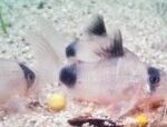 They have a cream body with a black mark over each eye, looking like a panda hence the common name “ Panda Cory”, they also have a black mark at the base of the dorsal fin and at the base of the anal fin. They can reach 2.5 inches. Corys are facultative air breathers, they often go to the surface for a gulp of air so there should be some space between the aquarium’s cover and the water surface, they also tilt their eyes looking as if they were blinking. To keep these fish in captivity, water pH should be between 5.8 and 7.0 and water temperature should range from 72ºF to 79ºF. The tank should have a sandy substrate, it should be well planted and have many hiding places. Panda Corys are peaceful and can be kept in a community aquarium with other peaceful species like small characins or cyprinids. These fish should be kept in groups of at least 5.