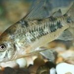 They are bronze and have dark green markings covering the body. This species has some interesting behaviors, like being able to produce sound with its pectoral fins, they usually only vocalize during courtship, it also tilts its eyes looking as if it was blinking and it is a facultative air breather that often goes to the surface for a gulp of air. Pepper Corys can reach 2.5 inches. To keep these fish in captivity, water pH should be between 6.0 and 7.0 and water temperature should range from 72ºF to 78ºF. The aquarium should have a sandy substrate, many hiding spots, plants and rocks. They are peaceful and can be kept in a community tank with peaceful species like Barbs, Tetras and others. They should be kept in groups of at least 6 which can be kept in a 15 to 20 gallon tank.