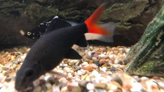 Even though these fish are called sharks they are actually related to carps. They are black with a red tail fin, they are usually 5 inches. To keep these fish in captivity, water pH should be between 6.0 and 8.0 and water temperature should range from 72ºF to 79ºF. The tank should have hiding places, rocks and a gravel substrate. They are not recommended for the community aquarium as they are very territorial and can become quite aggressive, however, reports suggest that they can be kept with Tetras and Barbs. They shouldn’t be kept in groups since they become very aggressive against their own.