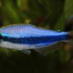 The Royal Tetra is a peaceful freshwater fish that is native to the Amazon River Basin. They can grow up to 2 inches (5 cm) in length and have a silver body with a neon blue stripe along the lateral line. The dorsal fin is red, and the tail fin is forked. They are schooling fish and should be kept in groups of at least six individuals. They prefer soft, acidic water with a pH range of 5.5 to 7.5 and a temperature range of 72 to 82°F (22 to 28°C). They are relatively easy to care for and make a great addition to a community aquarium.