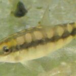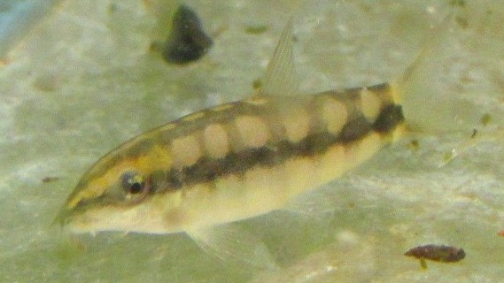 These fish are silver and have a checker-like pattern of black bars in their upper body. They can reach 2 inches. To keep these fish in captivity, water pH should be around 6.0 and 7.5 and water temperature should range 72ºF and 86ºF. The tank should have caves, rocks, hiding places and a sand substrate. They can be kept in community aquariums and should be kept in groups of at least 6. A 20 gallon tank is enough for a small group.