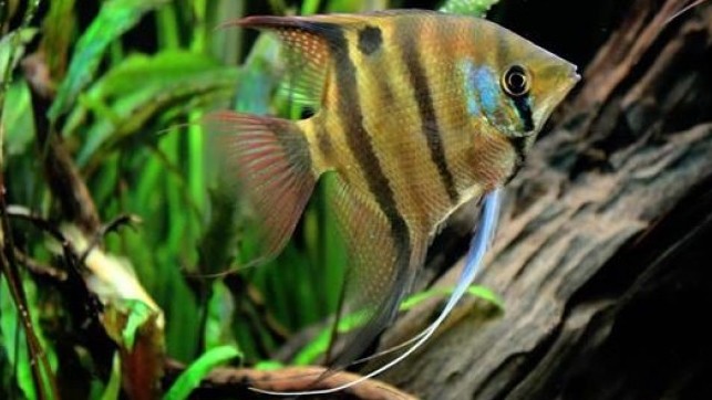 The Spotted Angelfish (Pterophyllum scalare) is a freshwater species native to the Amazon basin in South America.