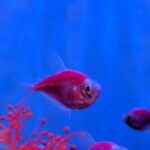 Tetras have a small rounded fin between the dorsal fin and the tail fin and many bones connecting the inner ear to the swim bladder providing an excellent hearing to these fish. Starfire Red Tetras are genetically modified to be fluorescent red. These fish are usually 2.4 inches. To keep these fish in captivity water pH should be between 6.0 and 7.0 and water temperature should range from 68ºF to 78ºF. The tank should have dense vegetation, open areas for swimming, a cover since these fish are jumpers, floating vegetation to help dim the light and gravel or sand substrate. These fish can be kept in a community aquarium with larger fish, smaller fish may get their fins nipped by the tetra however the fin-nipping behavior of the tetra can be corrected by keeping it in a group of at least 6. A 15 gallon, 20 inches long tank is the minimum recommended for a small group.