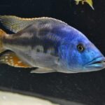 Males are blue with yellow fins and can reach 8 inches while females are a brownish silver and are smaller than males. To keep these fish in captivity, water pH should be between 7.5 and 8.5 and temperatures should range from 77ºF to 84ºF. The tank should have open areas for swimming, a sandy substrate, rocks and caves. It is a peaceful species that can be kept in a community tank as long as its tankmates are equally peaceful. Tankmates to avoid are Mbunas, other Copadichromis and similarly colored fish. Good tankmates are Aulonocara species and Haps. This species is best kept in groups of 3 or more females and one male.