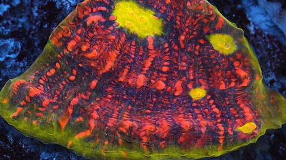 The Bazooka Joe Watermelon Chalice Echinophyllia has an aggressive behavior. Therefore, proper spacing must be maintained with regards to nearby corals.