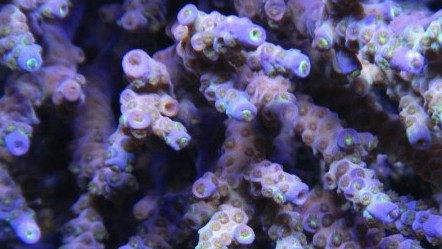 For the Blue Bottlebrush Acro, they are predominatly colored yellow green with white violet rings at the tip. This are the water parameters for cultivating Blue Bottlebrush Acro: