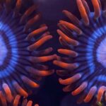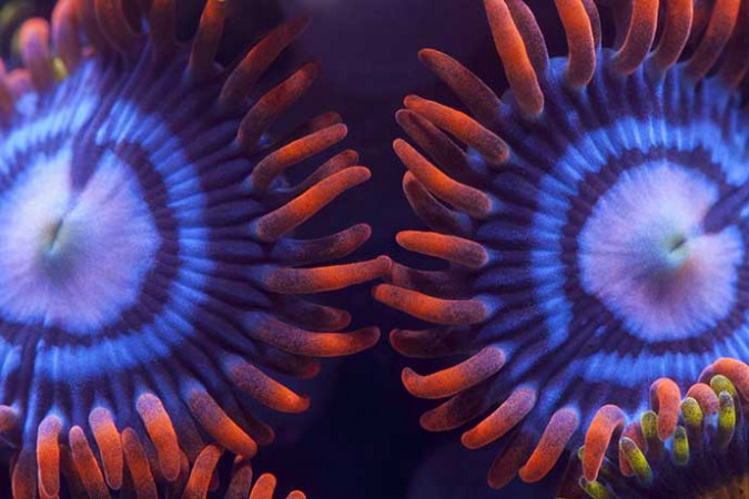 Fire and Ice Zoas (Zoanthus sp.) are a beautiful species of Zoanthid that have brilliant steel blue and red coloration. With its easiness to care and feed, it is an excellent choice for beginner reef aquarists. Many of them caught from deeper locations on the reef. The environment of deep reef species is often challenging to reproduce in the aquarium environment completely. However, in the case of Fire and Ice Zoas many hobbyists have had success by placing them lower in the aquarium in a location that receives strong but filtered lighting.