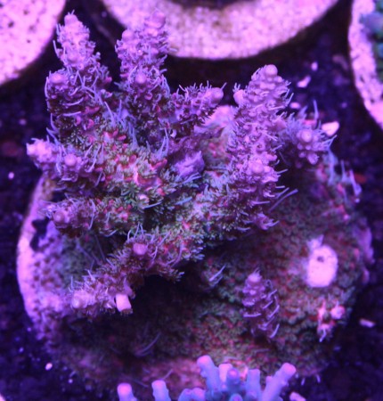 A mature tank is highly recommended in propagating Pinky the Bear Acro. They require stable tank condition and that a sudden change could lead to stress and death. They are highly sensitive to temperature, sedimentation, chemical and environmental change.