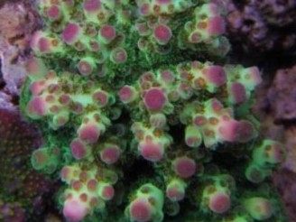 For the Strawberry Fields Acro, they are predominatly colored pink with green polyps This are the water parameters for cultivating Strawberry Fields Acro: