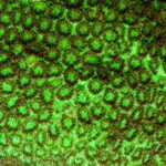 In general, corals coming from the genus Plesiastrea have numerous small corallites and is arranged in a tight pack. While it typically grows in an encrusting form, it can also grow in to a massive and plate-like form.
