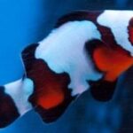 Black Ice Snowflake Clownfish are a cross between the Black ocellaris and a Snowflake. ORA was trying to produce a black ocellaris with a snowflake pattern and the Black Ice Snowflake was the result. The Black Ice Snowflake looks very similar to the Snowflake, however, it has intense black markings around the irregular white bars.