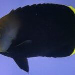This is one of the easier angelfish to keep especially if a smaller specimen is acquired, since they’re not generally fussy with food preferences. Juveniles of this species are particularly striking being black with bright yellow accents, particularly the broad yellow border at the edge of of the upper fin straight down through its tail and the back of anal fin.