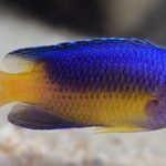 The Blue and Gold Damselfish is two-tone in color with electric blue primarily on the top portion and bright yellow on the bottom and posterior portion. There is a considerable species variation in the amount of yellow on the body of the fish. It can be confrontational towards its tank mates.