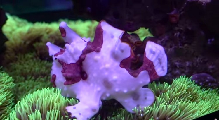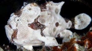 The warty frogfish or clown frogfish soft skin is covered with numerous small, wart-like protuberances. Its large mouth allows it to consume prey the same size as the angler size. Frogfishes have the capacity to change their pigment color and pattern to their surroundings this process could take a few weeks. they are ambush predators and tend to blend into their environment. They use their bottom fins to hold on to things as well as to move around, most time other fish do not know they are there until it is too late. Should not be kept with smaller fish, keep in mind in the wild they are known to reach lengths of up to 5.9″ so while they may be small at first they could grow and eventually eat other fish in the tank.