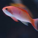 The Coopers Anthias is a beautiful and popular saltwater fish that can reach a maximum length of 4 inches. It has a slender and elongated body with shades of purple and pink, and a yellow dorsal fin. This species is peaceful and can be kept in small to medium-sized aquariums, preferably with plenty of hiding places and a water temperature range of 72-78°F and a pH range of 8.1-8.4.
