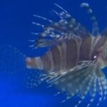 Dendrochirus zebra it has red, white, and black vertical stripes along the body; large, fan-like pectoral fins; and tall, quill-like dorsal fins. A medium aquarium with numerous hiding places is suitable. It will hide while acclimating to its new environment.
