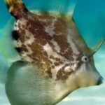 Fan Bellied Filefish have a mostly yellowish tan body with small white protrusions coming off of its body. Fan Bellied Filefish will do the best with kept in tanks that have a lot of live rock, macroalgae and marine plants in them. Fan Bellied Filefish like to hide in the plants and will also like eating the macroalgae and picking small inverts off of the live rock. Fan Bellied Filefish are peaceful fish, so they should really only be kept with other peaceful to semi-aggressive fish.