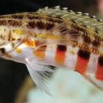 The Lantern Basslet, also known as Baldwin's basslet, is a small, colorful species found in the western Atlantic Ocean. They have a bright orange body with a large, black spot on their side, and blue fins. They can grow up to 3 inches in length and require a tank with a minimum size of 20 gallons.