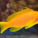 The Lyretail Anthias is a popular saltwater aquarium fish known for its vibrant colors and striking appearance. It can reach a maximum size of about 5 inches (12.7 cm) and has a lifespan of around 5-7 years. These fish are generally peaceful, but males can be territorial toward each other. They should be kept in aquariums with plenty of hiding spots and a variety of live rock for grazing.