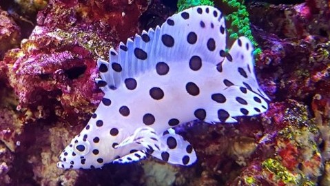 With beautiful black polka dots over its serene off-white body, the Panther Grouper makes a stunning addition to any aquarium. It can attain a size of up to 20 inches in the wild but is imported about 2-3 inches typically. Keeping the Panther Grouper in a larger aquarium is advised. The Panther Grouper has a distinctive feature of breaking up the body shape that smothers it from the predators. It is hardy, has a long life. It is very important that the aquarium should have sufficient filtration to maintain the quality of water, as the Panther Grouper produces a large amount of waste. It should not be housed with small fishes that can fit in its mouth as the Panther Grouper is a highly predatory fish. This is precisely why the Panther Grouper is not considered a reef-safe species. It seems to be tolerant of copper treatments and is considered as a good candidate for hyposalinity therapy. It grows very quickly and is hardy in nature that makes it resistant to many fish infections or diseases. The Panther Grouper requires a lot of hiding spots and overhangs.