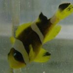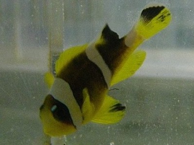 The Two-Band Clownfish is a member of the Clarkii family. They are mustard yellow to rusty orange in color with 2 white bars located on the head and mid-body. There is no band on the base of the large lyre tail. They grow to a maximum size of around 4 inches and will become territorial as they mature so more than 2 fish per tank is not recommended. They have a very attractive swimming pattern that makes them look as if they were bobbing up and down continuously. This feature has won them a spot among hobbyists of all levels as one of their favorite clownfish. The Two-Band Clownfish is found in the Red Sea.