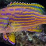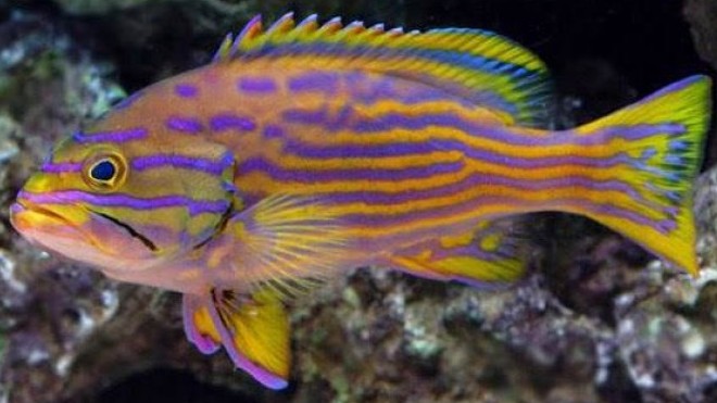 The Pollenei Grouper is beautifully colored with a green and yellow body with yellow tipped dorsal and anal fins. The body of these fish is lined in blue. These fish are a rare find in the industry and make a great addition to a large saltwater fish only aquarium. A large aquarium is required due to its size and feeding habits. It is an extremely aggressive fish and may eat tank mates as well as crustaceans that are small enough to consume.