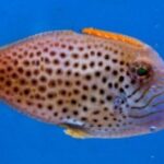 The Colored Filefish body is orange to red in color and the head can be gray to black. Filefish from Hawaii tend to have more vivid colors than those from the Indian Ocean. It is a shy fish, and rarely aggressive towards other fish except for those of its own genus. It is best suited for a medium to a large tank that does not contain invertebrates.