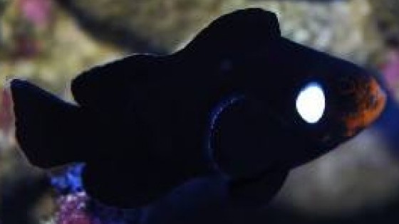 The offspring of Midnight Clownfish range from completely stripeless to uniquely patterned Extreme Misbars. Occasionally you’ll find Midnight Clownfish with dots (single dot in this particular fish). The peculiar white markings can be on the cheek, or on any other area of the body.