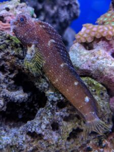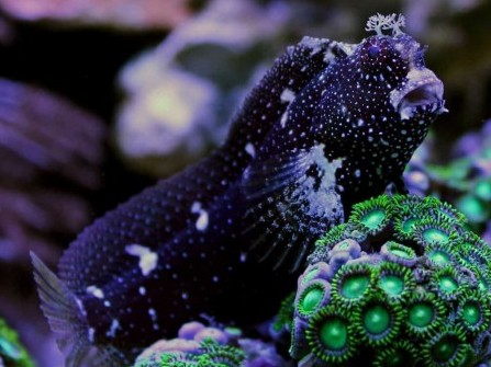 The Starry Blenny is a small saltwater fish that is found in the Indo-Pacific region, from the Red Sea to Japan, and down to the Great Barrier Reef. They typically grow up to 3 inches in length and are known for their unique starry pattern with white spots on a dark brown or black background. Starry Blennies are peaceful fish that can be kept in a community aquarium with other peaceful species.