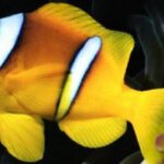 A beautiful Clown that is yellow-orange in color with a white vertical band behind its head and at mid-body. It is very similar in appearance to the Clarkii Clown, but the Bicinctus lack the white vertical band at the base of their tail. This fish is the most prevalent Clownfish in the Red Sea. The Bicinctus Clown does not need an Anemone to survive but will accept Bubble Tip, Sebae, Long Tentacle and Carpet Anemones as its host, as well as corals. These fish will accept most fish foods and are perfect for reef tanks. Clownfish have a very distinct swimming motion that is different from most fish. This is likely passed on through their genetic makeup from centuries of wiggling within the tentacles of Anemones.
