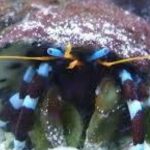 The Dwarf Zebra Hermit Crab is popular because of its unique coloration. Its pincers are dark but it has white or orange stripes making it look like zebra’s skin. It also has long eyestalks that are colored blue with an orange upper half part. Its body is small but its left claw is enlarged, therefore, it is also called Left-Handed Hermit Crab. Like other hermit crabs, it also lives inside empty snail shells that serve as its protective covering. It can grow up to 1 in.