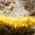 The Yellow Sea Cucumber which originates from the Indian Ocean is very striking in appearance. They are bright yellow in coloration and have an elongated body with spikey projections. When feeding, the Yellow Sea Cucumber extends their branchy feeding arms into the current. These are beautiful filter feeders for an established reef aquarium. The Yellow Sea Cucumber requires live rock to provide the nutrients it needs to sustain its health. It will usually find a location with moderate to strong current. It is a filter-feeding cucumber and similar in nature to the Sea Apple. If a small group is kept, spawning in the home aquarium is possible. They may also reproduce by dividing into 2 individuals. Like other Sea Cucumbers, Colochirus robustus has the potential to poison an aquarium. The Sea Cucumber cannot tolerate high nitrate levels or copper-based medications.